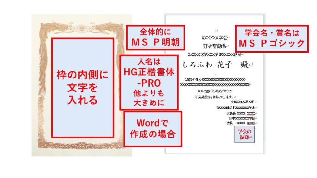 Microsoft wordで受賞者に渡す賞状を作成する際の注意点をまとめました。